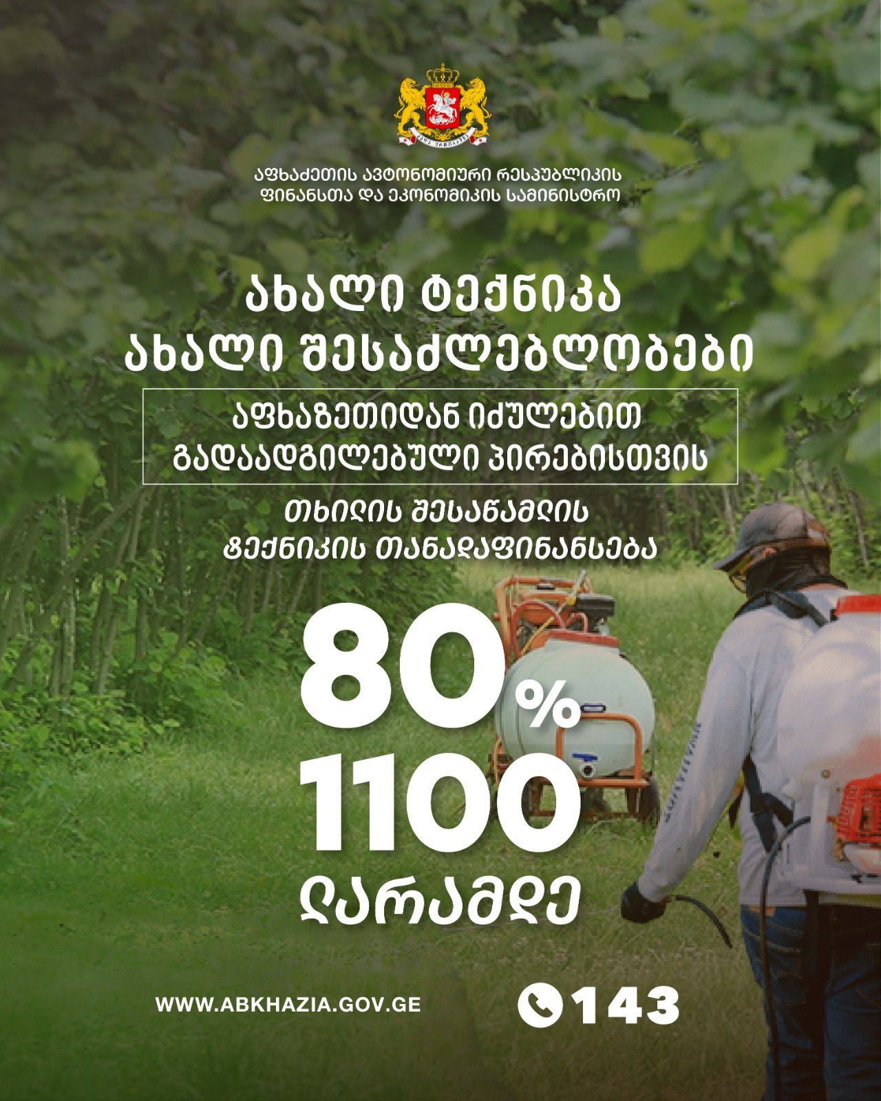 აფხაზეთიდან იძულებით გადაადგილებული პირებისთვის თხილის შესაწამლი აპარატის თანადაფინანსება
