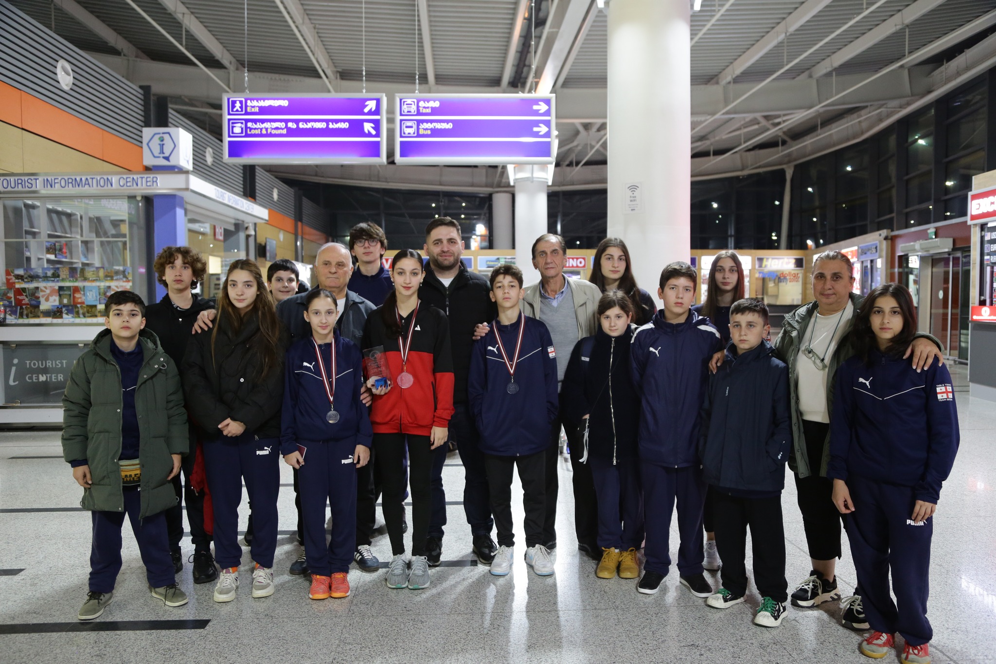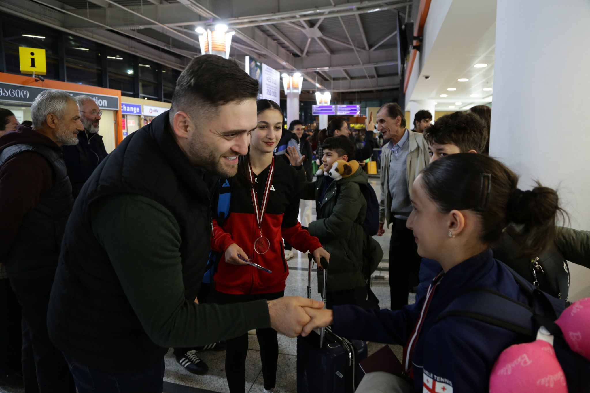 ბექა ღვაჩლიანი თბილისის საერთაშორისო აეროპორტში, მაგიდის ჩოგბურთის საერთაშორისო ტურნირის გამარჯვებულებს დახვდა