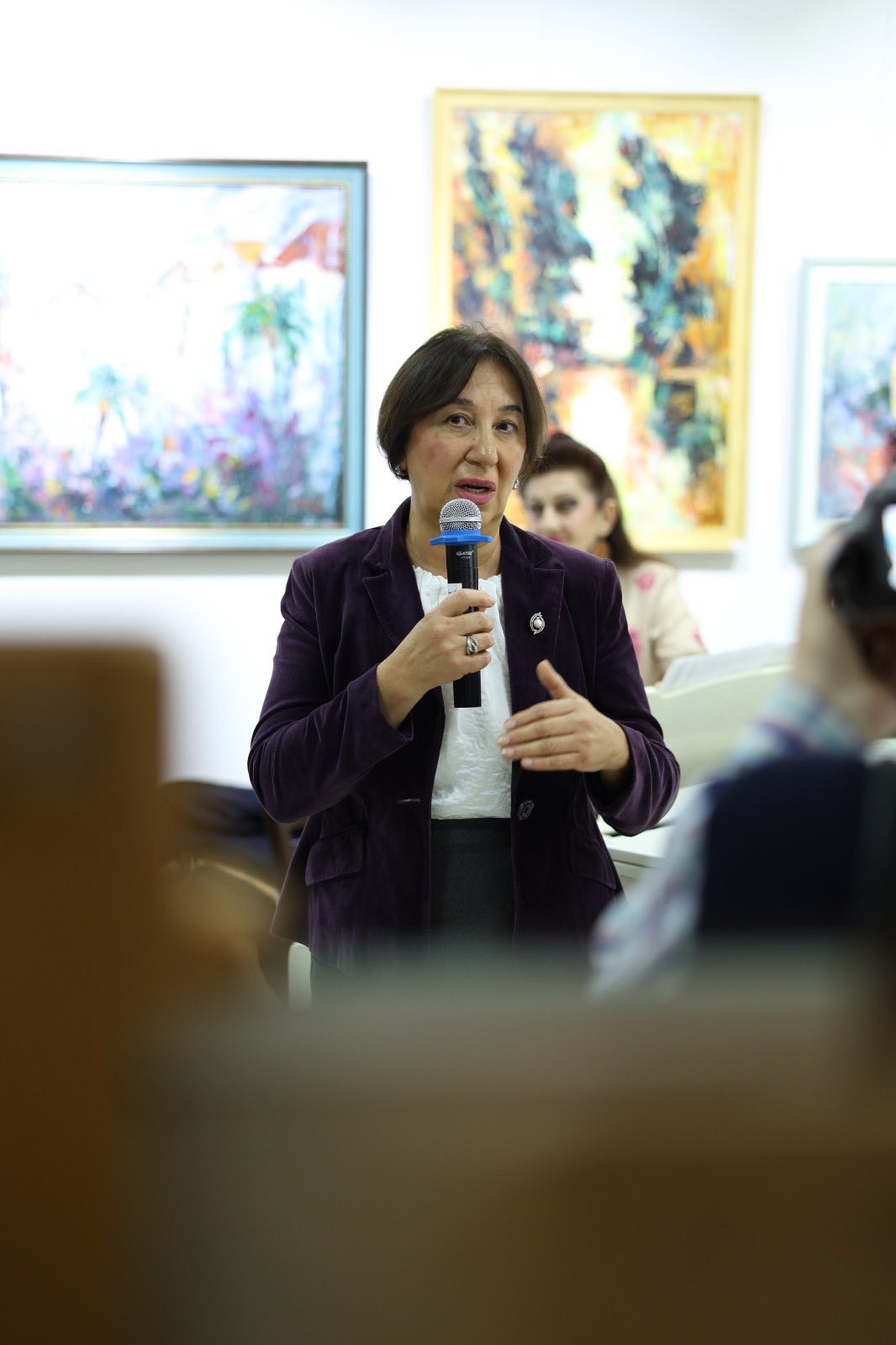 აფხაზეთის ა/რ განათლებისა და კულტურის მინისტრის პირველი მოადგილე სალომე კაპანაძე ავთანდილ შენგელიას, საიუბილეო პერსონალური გამოფენის „ჩემი ფერები“ გახსნას დაესწრო