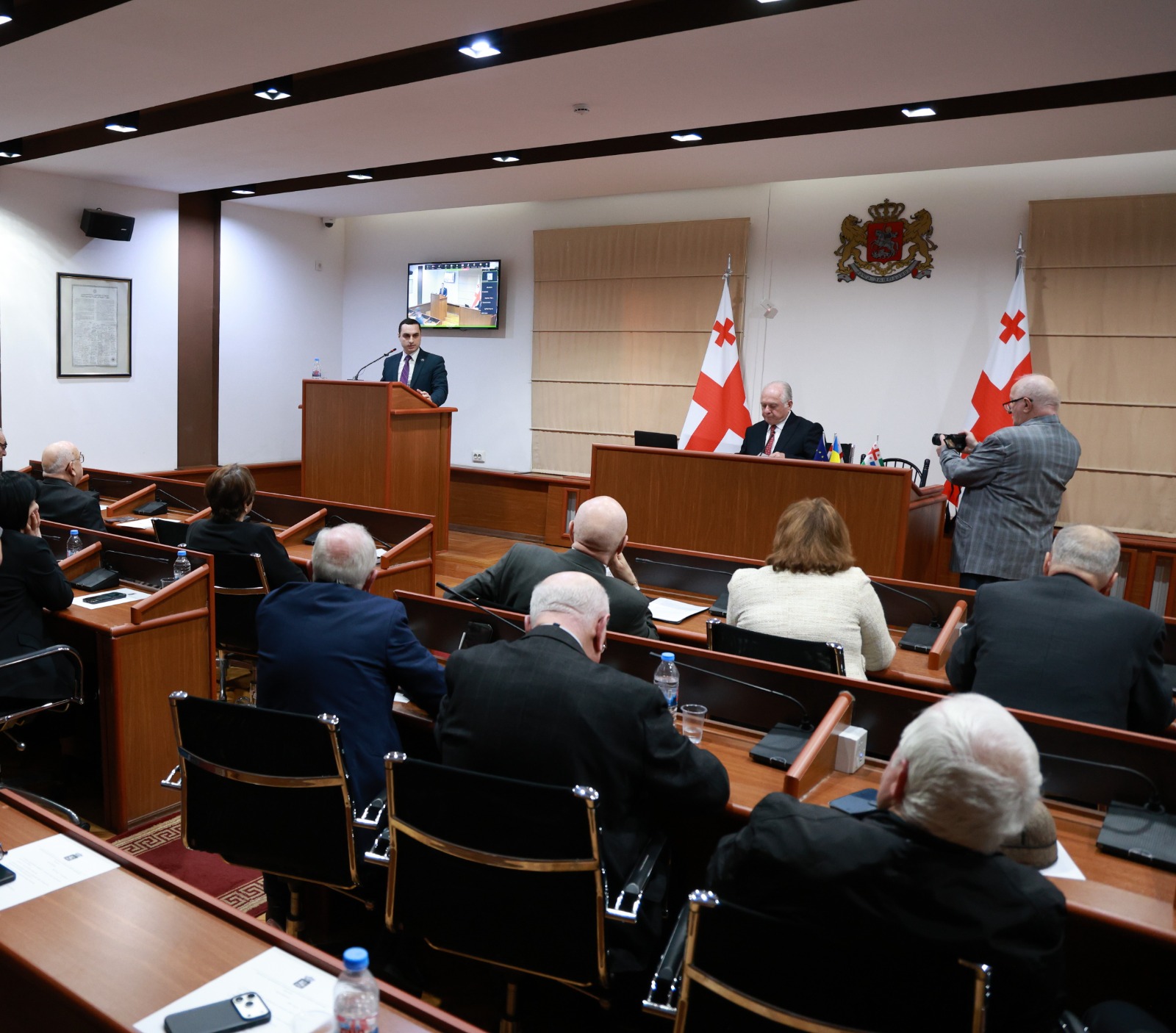 მოხსენებას აღმასრულებელი ხელისუფლების, დიპლომატიური კორპუსის, საპატრიარქოს, აფხაზეთისა და აჭარის ავტონომიური რესპუბლიკების მთავრობებისა და უმაღლესი საბჭოს წარმომადგენლები ესწრებოდნენ.